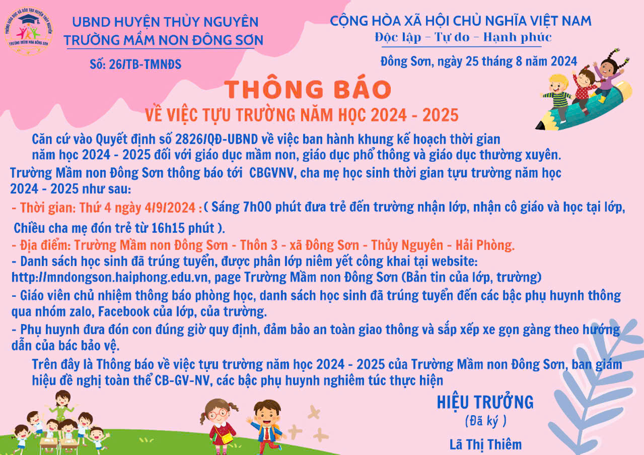 💟 Kính gửi quý bậc phụ huynh và các bạn nhỏ Trường Mầm non Đông Sơn thân mến!