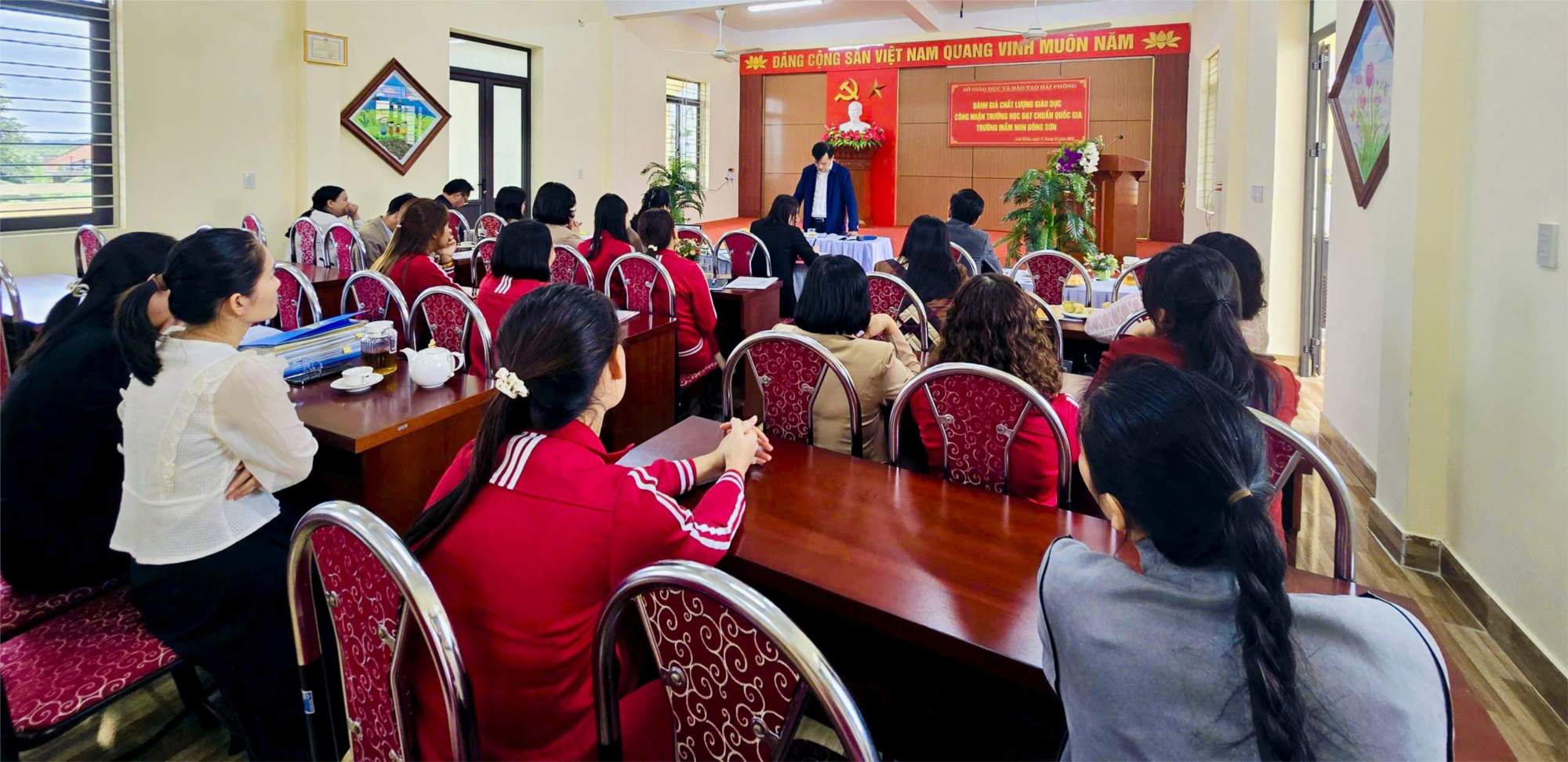 🌸👉 Thực hiện Quyết định số 7926/QĐ-SGDĐT ngày 24/10/2025 của Sở Giáo dục và Đào tạo thành phố Hải Phòng về việc thành lập Đoàn đánh giá ngoài công nhận lại KĐCLGD cấp độ 3 và Trường Đạt Chuẩn QG mức độ 2. Sáng ngày 4/11/2025 Trường Mầm non Đông Sơn, phường Lưu Kiếm rất vinh dự được đón đoàn về làm việc.